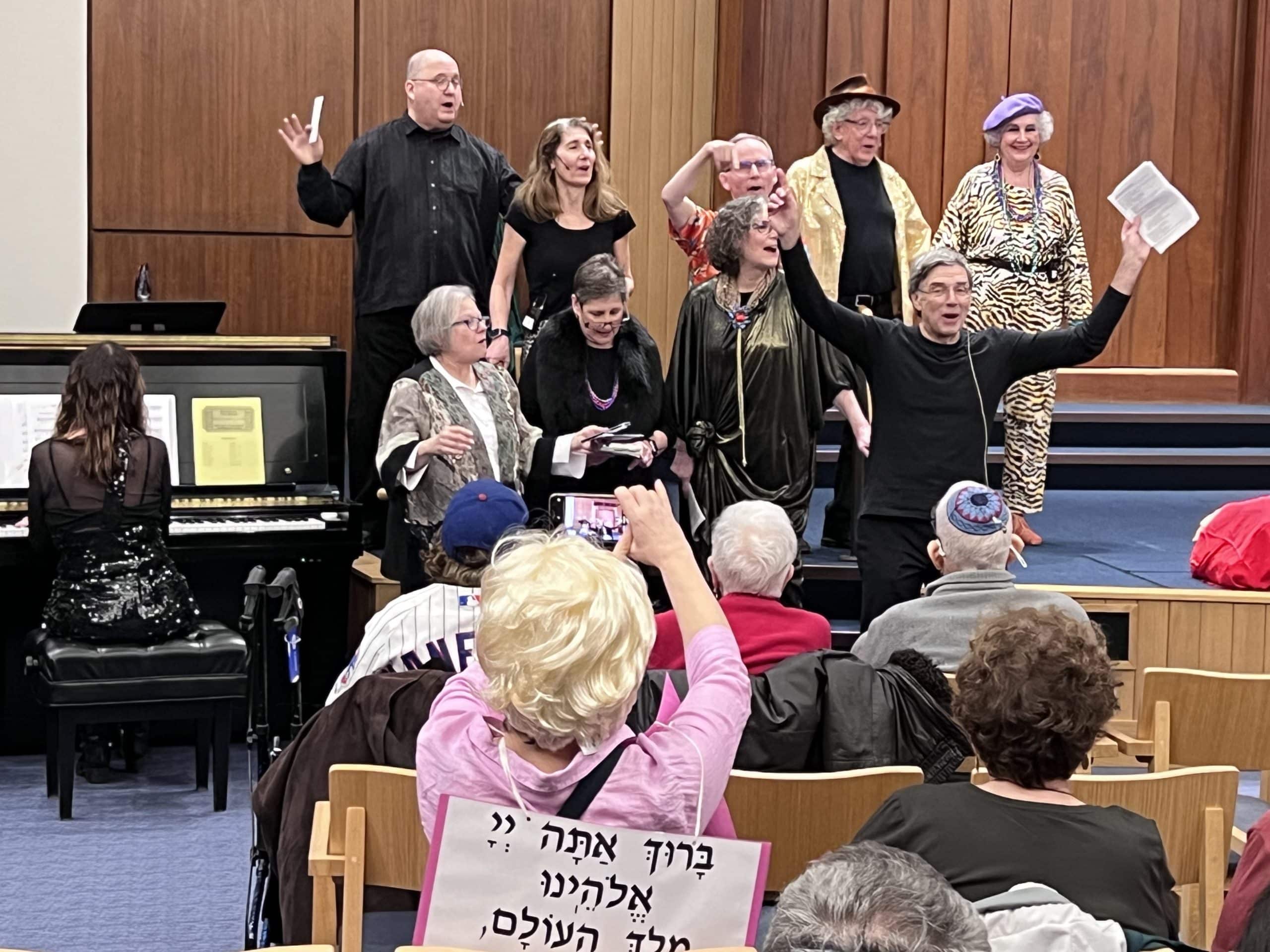 Purim Shpielers Extravaganza! With much appreciation to our amazing Purim Shpiel Directors Susan Forte and Barb Wertico, and to our impressive Shpielers, lyric writers and the band who never fail to entertain and make Purim special for all: Cliff Berman, David Graham, Dan Kaplan, Robin Langer, Steve Miller, Louise Motel, Rebecca Raus, Linda Schneider, Alan Teller, Diane Weil, Jonathan Yenkin and Jerri Zbiral. And Thank you to Dan Kaberon, Dan Kaplan and Jonathan Singer for accompanying Barb in the band.