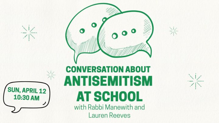 In conjunction with our Zachor Project photo exhibit, we will have a complementary conversation for adults during Beit Sefer about antisemitism. Rabbi Toby Manewith and Director of Lifelong Learning Lauren Reeves will talk about the antisemitism that many school-age children are encountering today. We will discuss how parents can respond when their child shares these experiences, ways to support children emotionally, and strategies for communicating effectively with schools when incidents occur. After this conversation, parents along with 5th-7th grade learners will visit a photo exhibit featuring Holocaust survivors and how their stories implore us to continue combatting hate and injustice.
