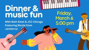 This month, we are partnering with JCC to host dinner for families with young children, geared at children ages 5 and younger, though anyone is welcome. We will have a yummy dinner and fun activities with Nicole Jaworski from Jamberry!